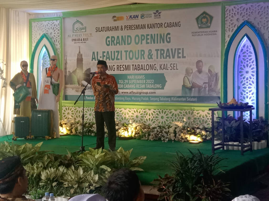 Hal tersebut dikatakan saat dalam sambutannya pada Peresmian Kantor Cabang Al Fauzi Tour & Travel di Kabupaten Tabalong yang turut dihadiri Direktur Utama dan Pimpinan Cabang Al Fauzi Tour & Travel, Camat, Kepala KUA Kecamatan Murung Pudak, Ulama dan Ustadz, jamaah serta masyarakat umum.