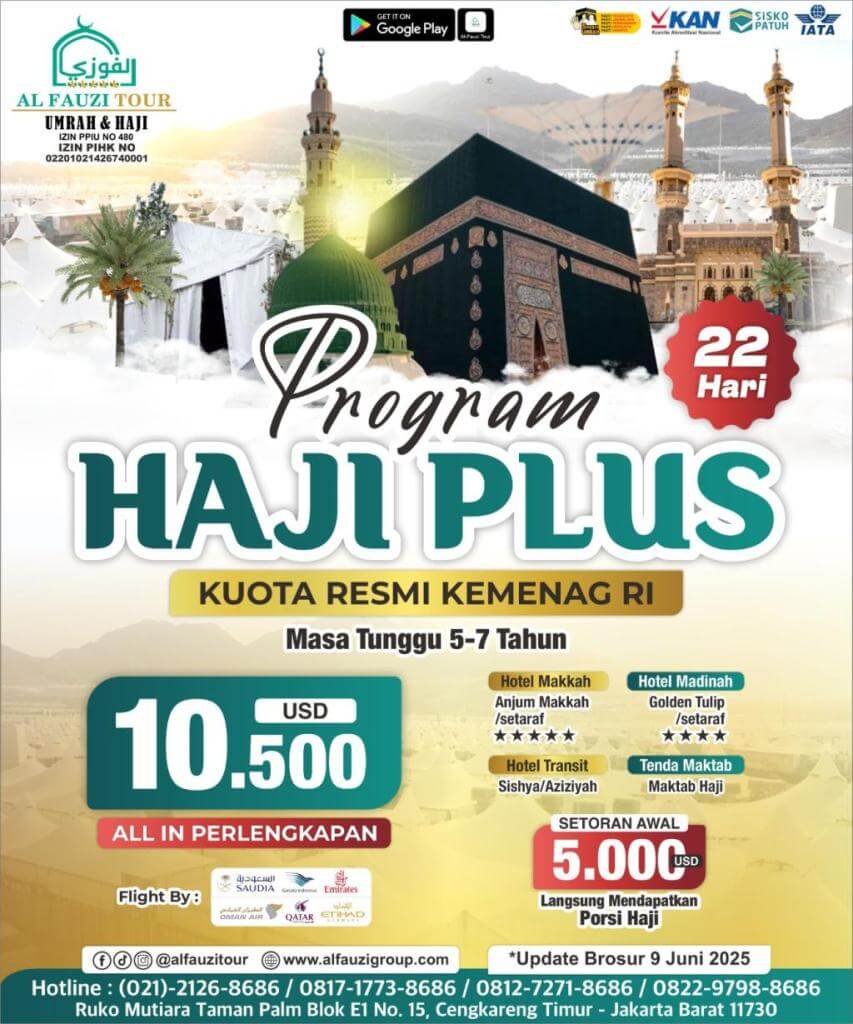 Keinginan untuk menunaikan ibadah haji kerap kali terhambat oleh masa tunggu yang sangat panjang, bahkan bisa mencapai puluhan tahun. Namun kini, hadir solusi cerdas dan resmi dari Al Fauzi Tour, penyelenggara haji dan umrah berizin resmi Kemenag RI, dengan program Haji Plus yang menawarkan masa tunggu jauh lebih singkat, yaitu 5–7 tahun saja.