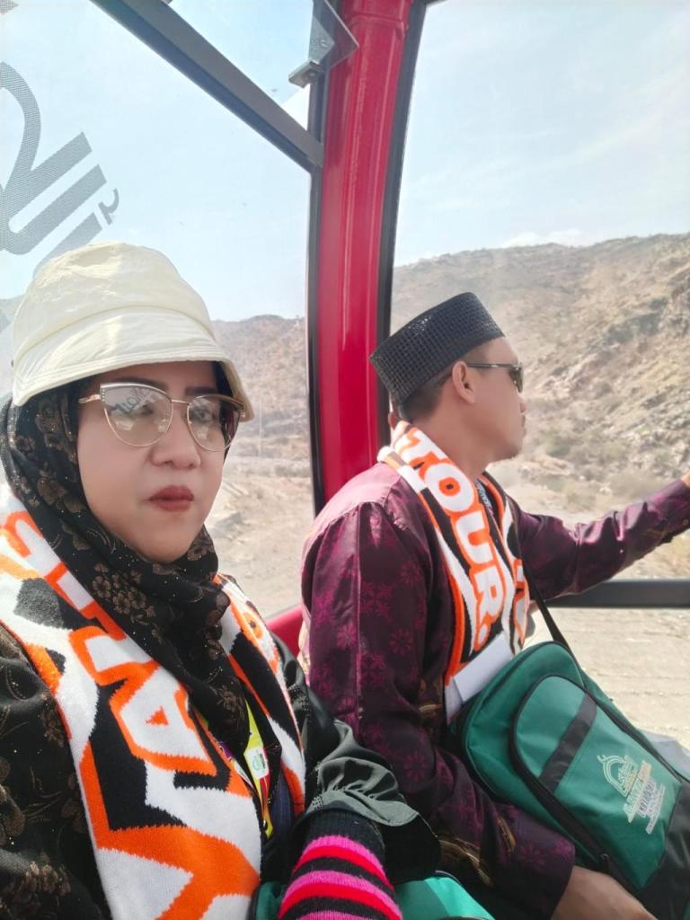 Selanjutnya, rombongan melanjutkan agenda dengan menaiki kereta gantung di Thaif. Dari ketinggian, seluruh peserta dapat menikmati panorama lembah dan perbukitan yang menakjubkan. Banyak jamaah yang mengabadikan momen tersebut bersama rekan perjalanan, menambah kehangatan suasana.