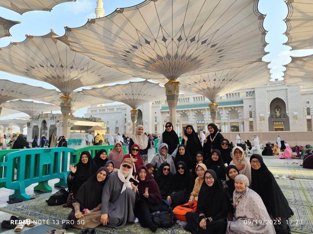 Al Fauzi News | Alhamdulillah, perjalanan ibadah jamaah Al Fauzi Tour terus berjalan dengan lancar. Pada 19 September 2025, jamaah dari dua rombongan, yaitu keberangkatan 15 September 2025 (Umrah Plus Dubai) dan 17 September 2025 (Umrah Mabroor), sama-sama melaksanakan ziarah dalam Kota Madinah. Agenda ini menjadi bagian penting dalam rangkaian ibadah umrah yang memberikan pengalaman spiritual penuh makna bagi para jamaah.