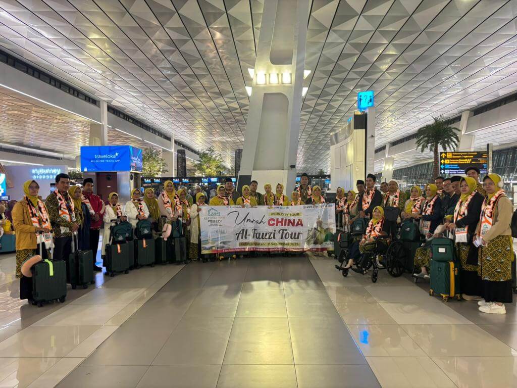 Al Fauzi News | Alhamdulillah, pada hari Ahad, 21 September 2025, Jamaah Al Fauzi Tour kembali diberangkatkan menuju Tanah Suci melalui program Umrah Plus China. Pesawat dijadwalkan take-off pukul 02.50 waktu setempat, membawa rombongan penuh semangat yang telah menyiapkan diri untuk perjalanan ibadah sekaligus wisata bersejarah ini.