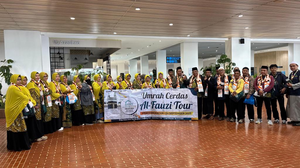 Al Fauzi News | Alhamdulillah, pada hari Rabu, 24 September 2025, sejumlah 30 jamaah Umrah Cerdas telah diberangkatkan menuju Tanah Suci. Keberangkatan ini menjadi momen penting bagi para peserta yang telah lama mempersiapkan diri untuk beribadah secara langsung ke Baitullah. Seluruh proses dilepas dengan rasa syukur dan harapan agar perjalanan berjalan lancar dan seluruh jamaah dapat menjalankan ibadah dengan optimal.