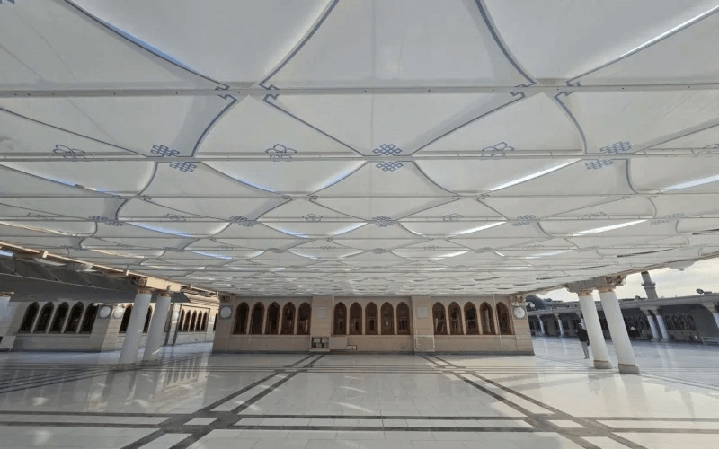 Kanopi tersebut dirancang menggunakan teknologi material anti-panas yang mampu mengurangi suhu permukaan hingga beberapa derajat, memberikan efek sejuk di area sekitar. Menurut laporan The Islamic Information, struktur kanopi ini terbuat dari bahan khusus yang mampu memantulkan cahaya matahari namun tetap menjaga sirkulasi udara alami, sehingga jamaah tetap merasa nyaman saat beribadah di area terbuka.