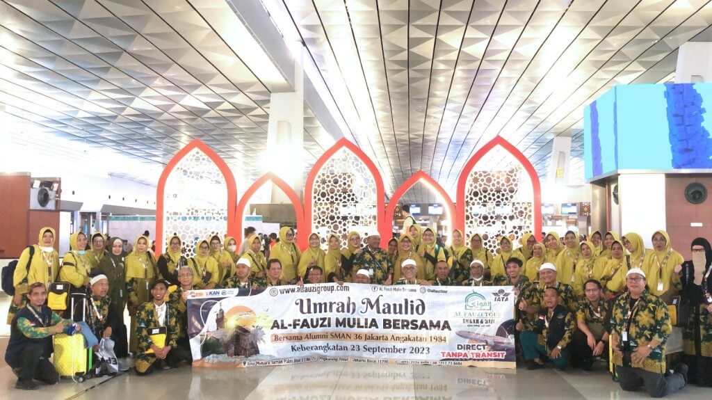 Sahabat Al-Fauzi News, Jakarta - Biro Perjalanan Haji dan Umroh terbaik, PT Fauzi Mulia Bersama, memberangkatkan 52 Jemaah dari Alumni SMA 36 Jakarta pada (23/09/2023) di Bandara Soekarno Hatta, Tangerang , Alhamdulillah Robbil'alamin, Puji Syukur keberangkatan jemaah umrah PT Fauzi Mulia Bersama kali ini merupakan keberangkatan yang ke sekian kalinya.