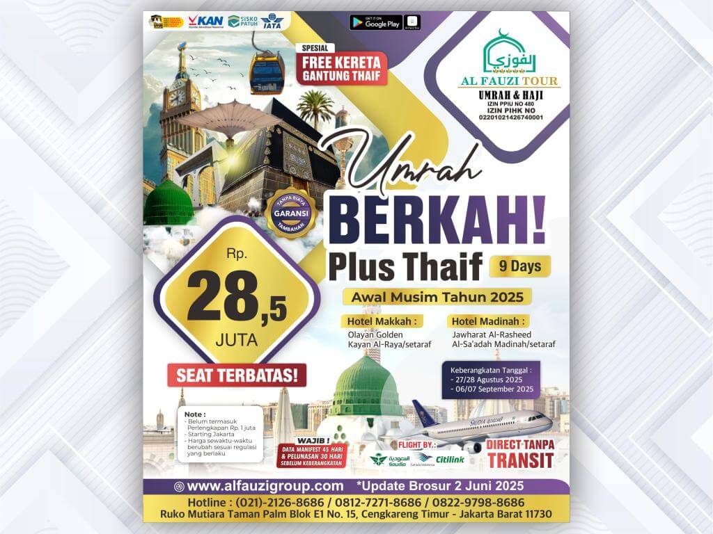 - Pembatalan sebelum keberangkatan dikenakan biaya 75%.